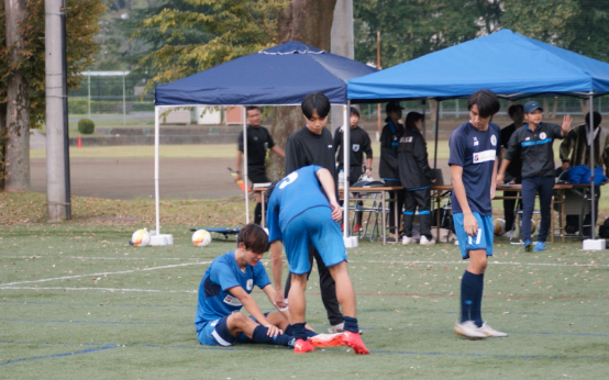 1その成果が現れたのがアミノバイタルカップでした。工学院に1-0での勝利。1年生のときは完全に引いて守っての1-0でしたが、今回はボールを保持し、正面からぶつかっての勝利。チーム力の向上を感じました。続く1部上位の常連、武蔵大学に対しても、堂々とした試合ができました。後半は押し込むものの、あと一歩が届かず負けてしまいました。しかし負けた瞬間、12月から気を張り続けていた力が抜けてしまい、次の週の練習では少し集中力を欠いてしまいました。その結果しっかり膝と足首を負傷。リーグ開幕直前に離脱という、2年連続で最もやってはいけないことをやってしまいました。チームもなかなか勝てませんでした。